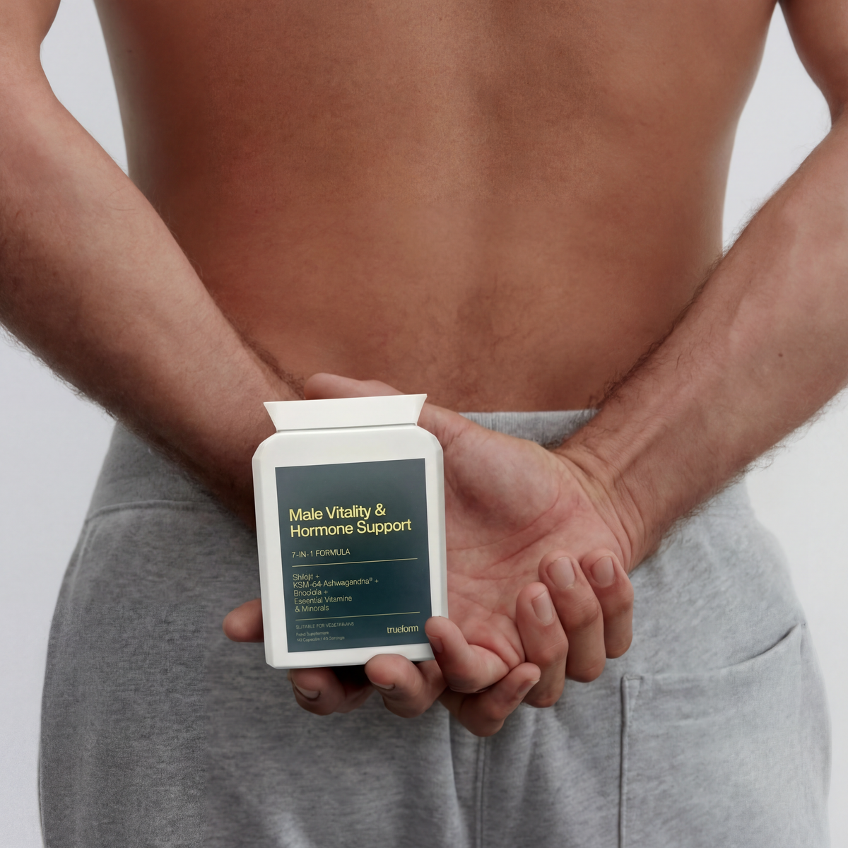 Most testosterone-enhancing supplements are underdosed and based on bro-science. Trueform Male Vitality & Hormone Support is a purposefully selected and potent natural blend of adaptogens, botanicals, and essential vitamins and minerals that work synergistically to address the root causes of low testosterone in Men over 30.